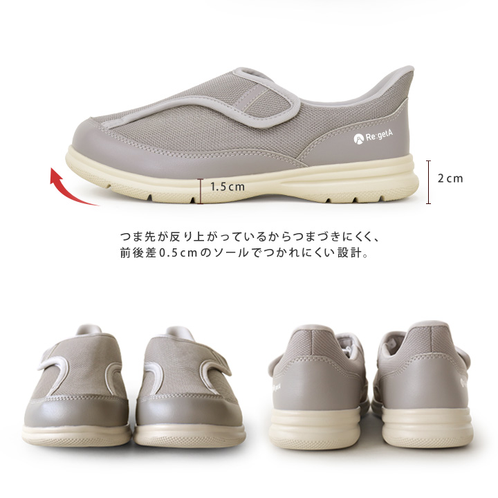 リゲッタウェルネス Re:getA Wellness WN-01 ハンズフリーシューズ ウォーキング リハビリ ケアシューズ 履きやすい 履かせやすい 超軽量 幅広 4E 前開き サポートシューズ 介護シューズ スットオン 面ファスナー 高齢者
