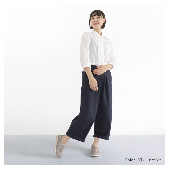 【 23cm着用 】 試着した23.5cmは、全体的にゆとりがあり、窮屈な感じが全くなくすごく楽でした。 そして、手を使わずにスッと簡単に脱ぎ履きができるのは、忙しい朝や玄関先で本当に便利だと感じました。 さらに、とても軽いので歩行も非常に快適で、たくさん歩く日のお出かけにも最適だと思いました。 |