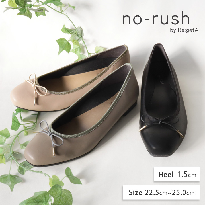 no-rush ノーラッシュ by リゲッタ 当店限定 NR-06 バレエシューズ パンプス スクエアトゥ ローヒール 履きやすい 歩きやすい 痛くない 柔らかい 通勤 結婚式 入学式 卒業式