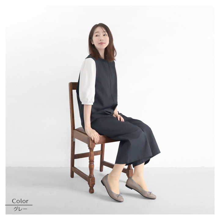 【 22.5cm着用 】 甲が低めのエジプト足(親指が一番長い足)で、素足で着用しました。 足長・ワイズともに絶妙なサイズ感です。裏地に少しだけクッション感があるからか、 かかとの抜けもほとんどなく歩く事ができました♪ 小さなリボンのポイントに、丸みを帯びたスクエアトゥのつま先が 可愛くなりすぎず程よい大人感がありますね。 上品でありつつぺたんこヒールだから、プライベートでもオフィスでも活躍しそうですね! |