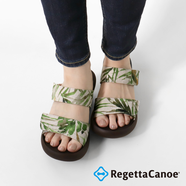 リゲッタカヌー RegettaCanoe CJLW-5540 ボタニカル柄 総柄 ローウェッジヒール 2本ベルト サンダル レディース つっかけ 歩きやすい 履きやすい 疲れにくい