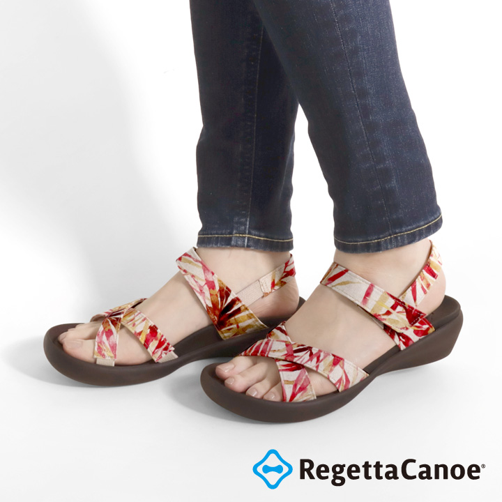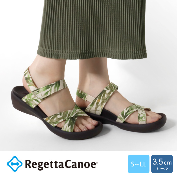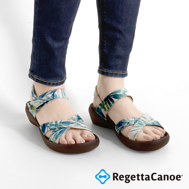 リゲッタカヌー RegettaCanoe CJFW-3520 ボタニカル柄 総柄 フラットウェッジヒール クロスベルトサンダル レディース バックベルト 歩きやすい 履きやすい 疲れにくい