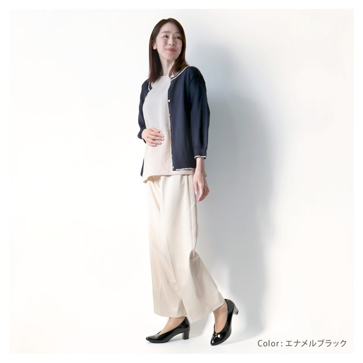エナメルの光沢感が足もとを明るく華やかに魅せてくれます。