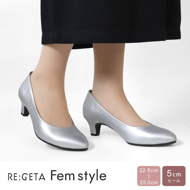 RE:GETA Femstyle -リゲッタ フェムスタイル-が誕生! アーモンドトゥデザインのシンプルなパンプス。 きれいめスタイルを演出するヒールアイテムです。 ゆったりとした履き口に4E相当の設計で、幅広の方も安心♪ ベーシックなデザインなのでお仕事でも使いやすい! 5cmヒールで美脚効果もあるのに、高さを感じない設計です。 インソールのつま先部分にはクッション素材を使用しているので 長時間の使用も安心。 華やかなシルバーはお祝いのシーンにも。 マットなブラックは通勤コーデにも合わせやすく、 足の負担を気にせず履ける嬉しい万能パンプスです! [パンプス] 【サイズ検索用】 [22.5][23.0][23.5][24.0][24.5][25.0] 【カラー検索用】 [BLK][SIL] 【検索ワード】 アーモンドトゥ/ハイヒール/5センチ/4E/きれいめ/エレガント/カジュアル/オフィスカジュアル/コンフォート/幅広/甲高/パンプス/外反母趾/レディース/日本製/高本やすお/リゲッタ/送料無料/アルトリブロ/りげった/美脚効果/パーティーシーン/結婚式/お呼ばれ/入学式/卒業式/フォーマル/キトンヒール/巻ヒール/エナメル/通勤/オフィス 新着レビュー(0)レビューはまだありません Step 1商品をカートに入れる add_shopping_cartお気に入りの商品を Step 2レジへ進む arrow_forwardカート画面で商品と金額を Step 3お客様情報を入力 personご住所・連絡先など、 Step 4お支払い方法の設定 credit_cardご希望の決済方法を Step 5内容を再確認し完了 fact_checkご注文内容を再確認し、 Step 6商品の発送 local_shippingご注文の商品を発送します。 | |||||||||||||||||||||||||||||||||||