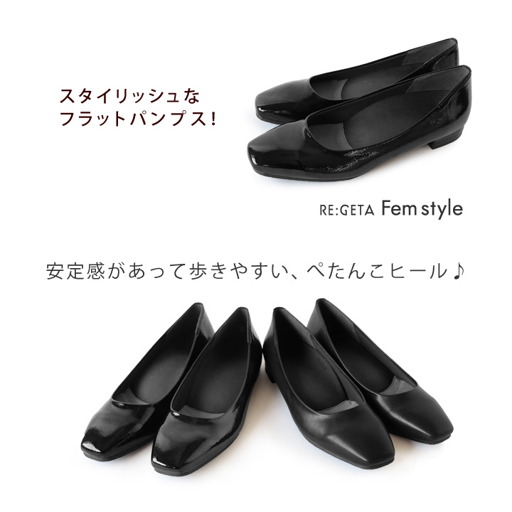 リゲッタ フェムスタイル RE:GETA Femstyle AMR-101 フラットパンプス 履きやすい 歩きやすい スクエアトゥ オフィスカジュアル