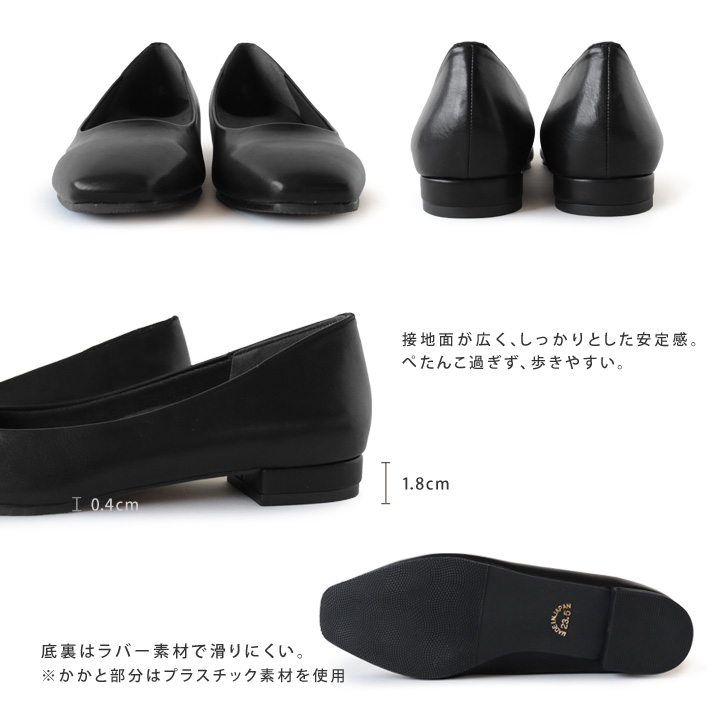 1.8センチのちょこっとヒールがぺたんこ過ぎず歩きやすいローヒール!