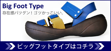ビッグフットサンダルのライトモデルで、快適かつ個性的な足もとを演出。