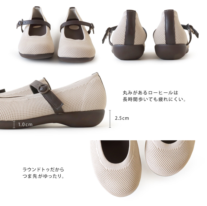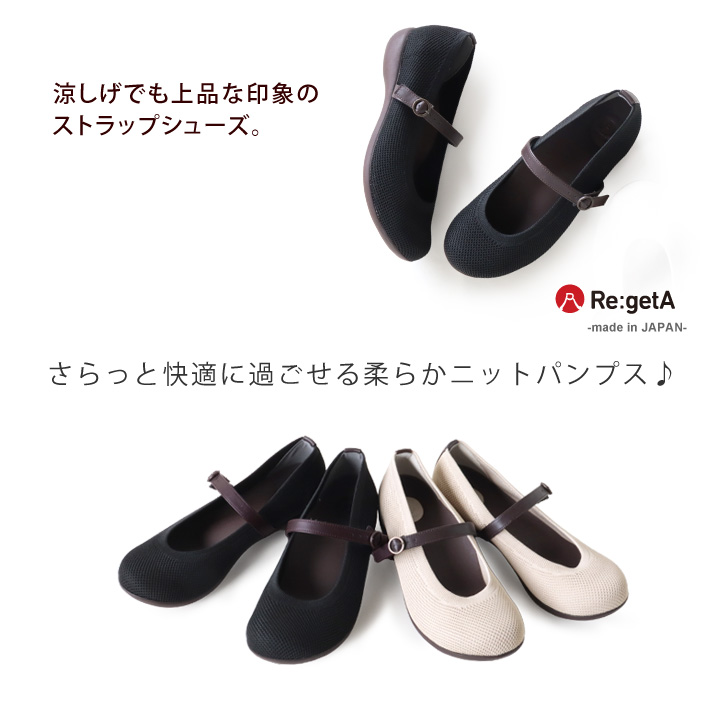 リゲッタ Re:getA R-2363 ニットパンプス ローヒール ストラップ シューズ ぺたんこ 履きやすい 歩きやすい 新生活 母の日 バレエシューズ